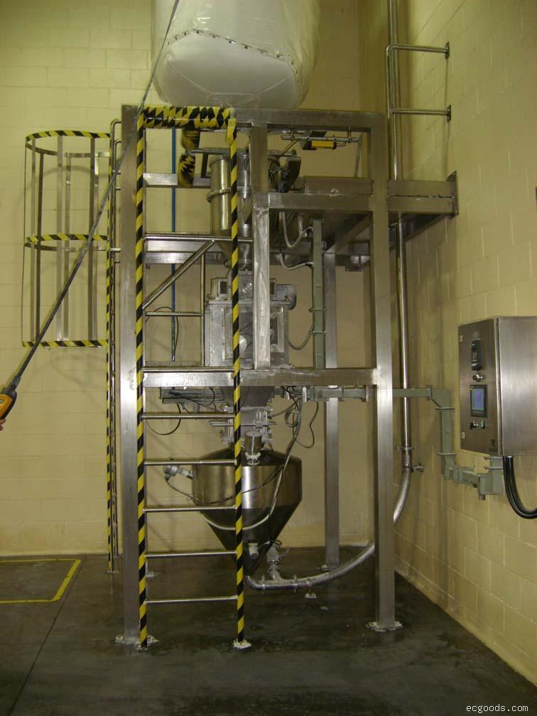 噸包拆包機(jī)卸載方式主要分為兩種:一種是大袋開袋后和大袋卸料站叉車將大袋(或噸袋)吊裝到卸料機(jī)的機(jī)架上,它本身不帶起重設(shè)備,二是大袋開袋站和大袋卸料站是靠自身的起重設(shè)備將大袋(或噸袋)吊裝到卸料機(jī)的機(jī)架上,不需要外界的幫助,它通過提升噸袋至設(shè)備進(jìn)料口,人工拆開噸袋下料口,打開流量閥并附以拍打、振動、破碎等裝置,促使袋內(nèi)的粉粒狀物料靠重力落進(jìn)料倉來完成拆包卸料工作,整個過程是全自動控制,系統(tǒng)操作穩(wěn)定,能完成連續(xù)拆包的任務(wù),操作過程簡單方便,通過相關(guān)實驗結(jié)果可知,拆完一包料的時間大約是5-6分鐘,領(lǐng)先于國內(nèi)大多機(jī)械設(shè)備生產(chǎn)公司。